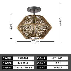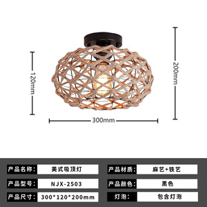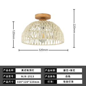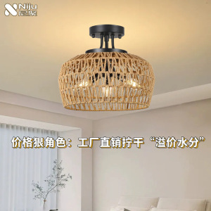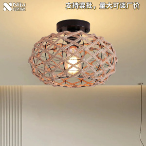 国境を越えたアメリカのシングルヘッド籐シーリングランプホームステイカントリーアイル新中華スタイル手織りボヘミアン