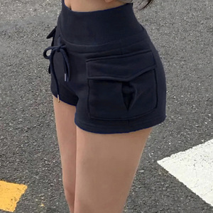 アメリカンストリート巾着ハイウエストワークウェアポケットパッチワークカジュアルショーツホットガールベーシックスリムストレートニットホットパンツ