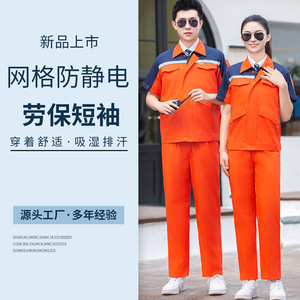 夏薄い半袖作業服スーツメンズ反射ストリップ通気性労働保護服工場ワークショップ作業服トップロゴ