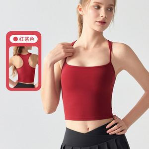 ✅ スポーツ下着女性の固定カップランニングベスト耐衝撃プッシュアップ美しいバックフィットネススリング夏トップヨガ服