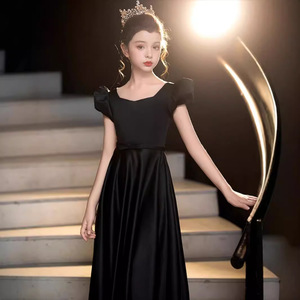外国貿易子供ドレス、大きな子供用黒ホスト誕生日宴会イブニングドレス、プリンセスドレス、ピアノ演奏ドレス