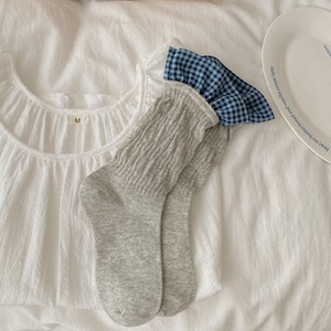 ブルーチェック柄レースソックスレディースミュウバレエ風縦柄ミドルソックス春と夏のカレッジパイルソックス