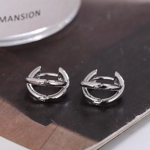 韓国の東大門購入ジュエリー、クールなスタイル、シンプルな気質、ダブルサークルクロスイヤリング、シルバー針パーソナライズイヤリング、女性用