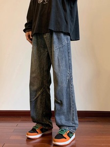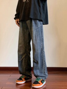 工装牛仔裤男直筒宽松阔腿美式高街vibe裤子潮牌痞帅复古休闲长裤