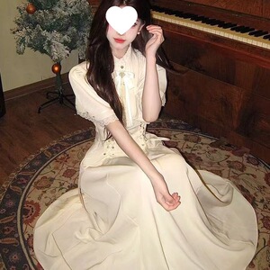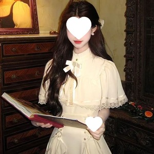 法式白色蕾丝立领公主无袖斗篷连衣裙女长款收腰显瘦夏季气质