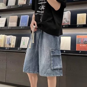 2025 新しいパーソナライズされた巾着デニムショートパンツメンズ夏カジュアルルーズビッグパンツミッドパンツトレンディなブランド 5 点パンツ