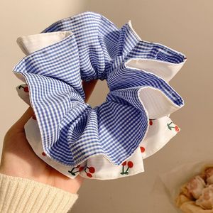 韓国風二層新スタイル赤と青のチェック柄ストライプチェリーインテーストヘアゴムヘアゴム大サイズ多用途ヘアゴム