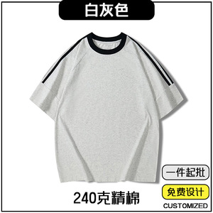ゆったりとした肩の短い袖、3本の袖の純綿Tシャツ、カスタマイズされたチームビルディングクラスのユニフォーム、広告文化シャツ、カスタマイズされたグループユニフォーム
