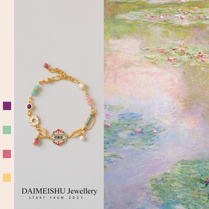 オリジナル夏のレトロな絶妙なカラフルなオイルドロップエナメルチューリップアマゾナイトブレスレットライト高級ハイエンドブレスレット女性用
