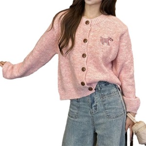 韓国版の子犬パッチ甘くて優しいセーター女性のための 2025 秋と冬の新しいルーズレイジースタイルファッションニットカーディガン