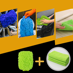 TEMU 多機能車のクリーニングセットシェニール洗車ワックスがけ手袋肥厚両面吸収性車拭き布