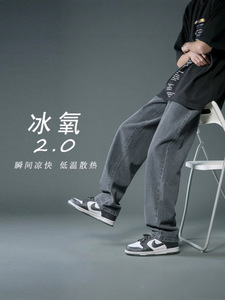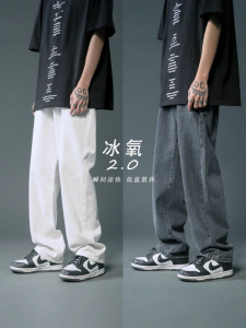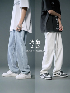 浅色牛仔裤男直筒宽松阔腿美式高街vibe裤子潮流百搭水洗休闲长裤