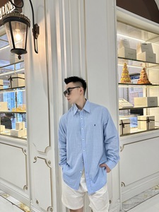 天花板版本现货RL家新款刺绣亚麻衬衫时尚百搭OS宽松版型男女同款