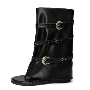女性用インナー高さウェッジヒールサンダル 2025 新しいレトロストリート通気性ローマンミッドレングストングトゥパンツブーツ