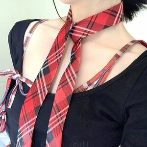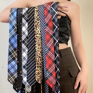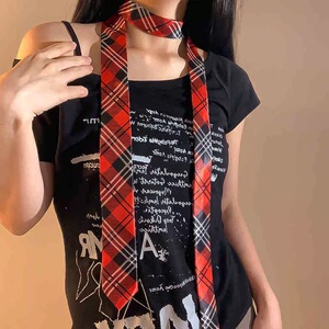 学院风长条格纹领带设计感时尚百搭领巾辣妹腰带装饰扎发绑包飘带