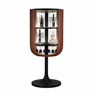 BIOOM 花びらワインキャビネットホームリビングルームイタリア無垢材デザイナーレッドワインキャビネットライト高級ハイエンド回転ディスプレイキャビネット