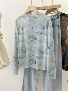 辣妹扎染长袖款t恤女2025夏季新款网纱薄款小衫宽松圆领上衣潮