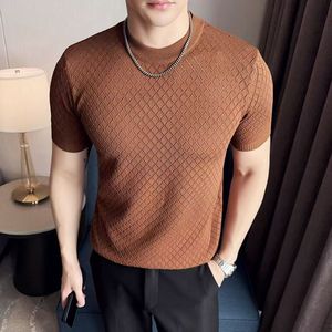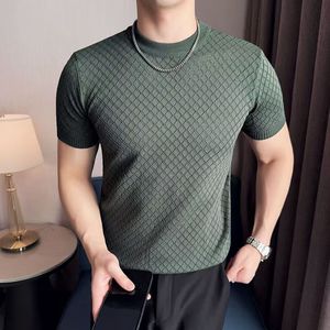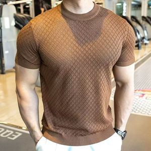 新款镂空冰丝针织短袖男士运动健身显肌肉可外穿针织打底衫半袖