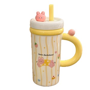 卡通吸管杯800ml大容量陶瓷喝水杯带盖可爱动物早餐牛奶杯伴手礼