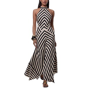 2025 夏の新ヨーロッパとアメリカのアマゾンクロスボーダー外国貿易婦人服ノースリーブバックレスストライプニットドレス