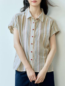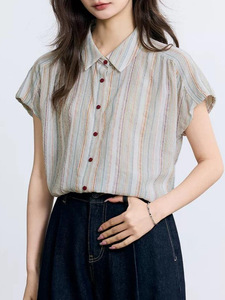 人气单品~绣花彩色条纹短袖衬衫女25夏季时尚连袖百搭舒适衬衣