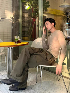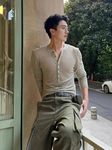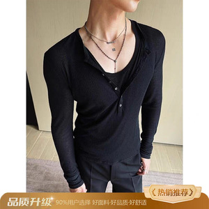 半开扣亨利衫男薄款透气紧身弹力长袖防晒罩衫氛围感针织网纱t恤