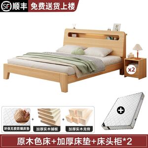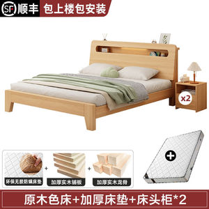 加厚原木床+加厚床垫+2床头柜【送货入户】