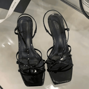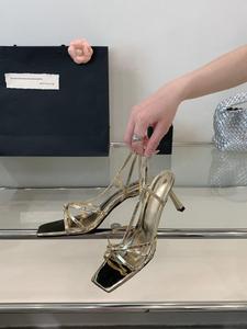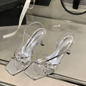 2025夏季新款时尚气质显瘦细跟方头高跟鞋小众设计感裸色露趾凉鞋