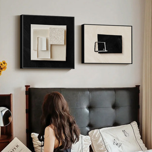 非常にシンプルなスタイルの寝室のベッドサイド装飾絵画白黒抽象的なレストランのリビングルームの吊り絵画ハイエンドのマスターベッドルームの壁の壁画