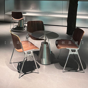 インダストリアルスタイルのカフェチェア、ステンレス製のバーテーブルと椅子、軽くて豪華でシンプルなネットレッドのウォールナットミルクティーショップのダイニングテーブルと椅子