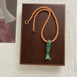 メイディンと同じスタイルの翡翠彫刻小魚ペンダントネックレス、シンプルでファッショナブルなニッチフェイクスタイルのカラフルなビーズ鎖骨チェーン