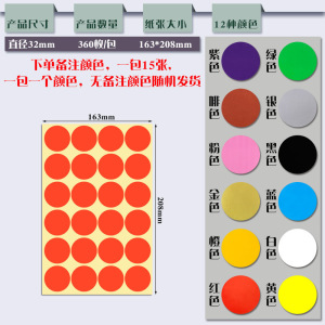 32mm 1パック1色(15シート/パック、合計360枚) ご注文の際は色にご注意ください。