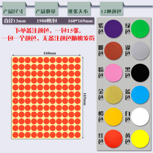 13mm 1パック1色(15シート/パック、合計1980枚) ご注文の際は色にご注意ください。