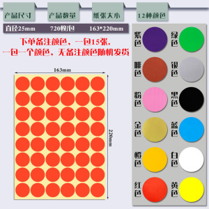 25mm 1パック1色(15シート/パック、合計720枚) ご注文の際は色にご注意ください。