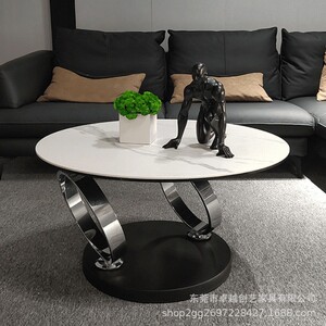 意式天然岩板旋转茶几小户型金属设计师现代客厅家用伸缩圆形茶台