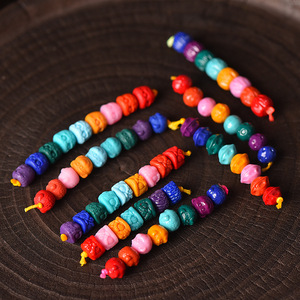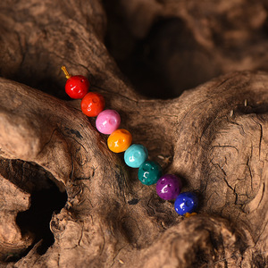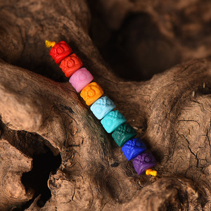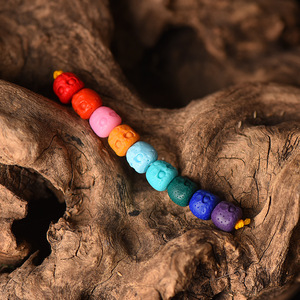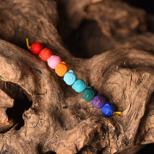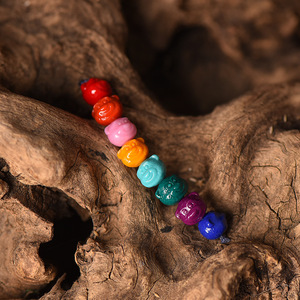 ライオンウェイククレーターを通過するパッションシード、ビーズ、クマ、ビーズホイール、ビーズ付きレインボーロングブレスレット
