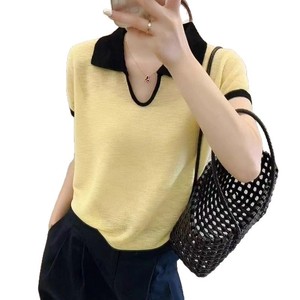 2025夏季新款翻领撞色小众针织衫小衫气质洋气遮肉短袖上衣t恤女