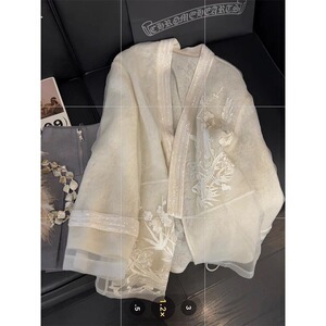 新中式重工刺绣衬衫女网纱仙气温柔风2025新款国风禅意清冷感上衣
