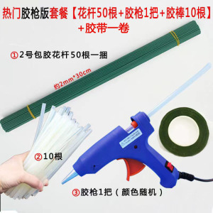 グルーガン + グルースティック 10 本 + 緑色のテープ 1 ロール + フラワーポール 50 本