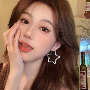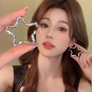 シルバー中空五芒星の大きなイヤリング、ユニークなデザイン、女性用の人気のイヤリング、小さな多用途イヤリング卸売