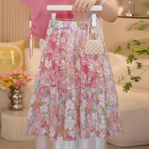 女の子花柄スカートスーツ夏 2025 新しい子供の夏服女の子ウエスト Tシャツ 2 点セット西洋スタイル