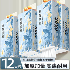 抖音同款12大提悬挂式抽纸家用面巾纸餐巾纸可湿水卫生纸斤实惠装