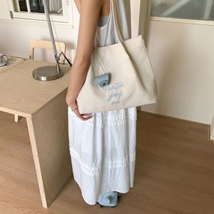 レターキャンバスバッグ女性のための 2025 新しいトレンディな夏のファッショントートバッグカジュアル大容量ショルダー通勤バッグ