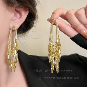 女性用のレトロなフラワーロングイヤリング、軽い贅沢、ハイエンド、インターネットセレブのファッショナブルなデザインのイヤリング、誇張された個性のタッセルイヤリング