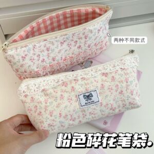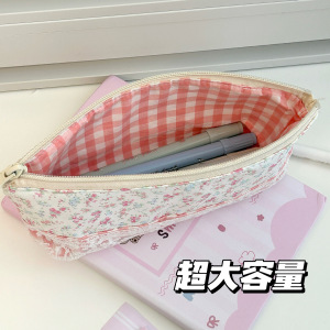 Xiaohongshuの人気のレースステッチピンクの小花柄鉛筆バッグイン高価値文具箱大容量収納袋