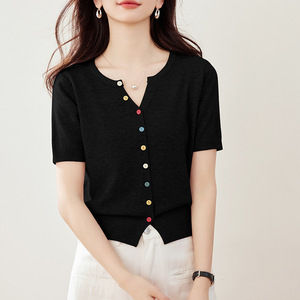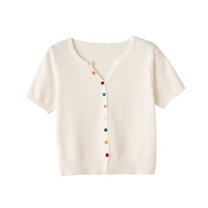 2025 無地外国風年齢軽減カラーボタンニットトップ女性の新しいファッション気質痩身春と夏の半袖カーディガン