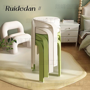 奶油风塑料凳子家用加厚现代简约风车凳餐桌备用高圆凳子餐凳椅子
