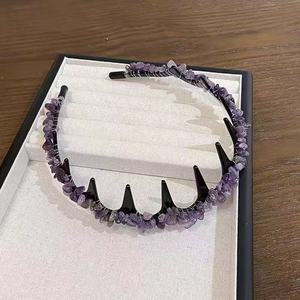 韓国クリスタルストーン歯付きライト高級ヘアフープヘアアクセサリーシンプルな気質レトロ多用途薄型ヘッドバンドヘアピン女性のヘアアクセサリー