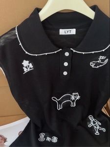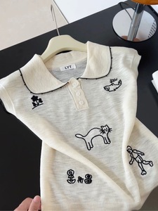 !韩国原单时尚重工刺绣Polo领短袖上衣女温柔百搭通勤上衣