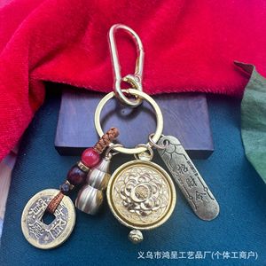 新款五福古风钥匙扣招财花间钥匙链挂饰坠十二生肖聚宝盆转转